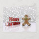 Delicious and elegant Christmas illustration featuring a decorated gingerbread man and red metallic 3D greeting on a light glamourous bokeh background.