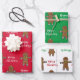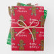 Wrap your Christmas gifts with this cute gift paper set, featuring gingerbread man and girl. Red, green and white background colours.