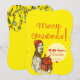 Merry Christmas girl with presents yellow Holiday Card