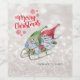 Adorable cute gnomes on sleigh and glittery bokeh background.