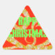 Merry Christmas Glitter Red Text Pattern Design Triangle Sticker