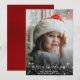 This beautiful Christmas card is simple, elegant and festive. It features your full frame photo surrounded by white glitter, sparkles, or stars with the caption: merry Christmas written in elegant script lettering. The back of the card is a deep red colour. Beautiful way to send holiday greetings.