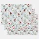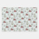 This set of 3 Christmas wrapping paper sheets features 3 watercolor holiday patterns- cute Christmas gnomes in the snow with trees, red festive cabins in the snowy woods, and Merry Christmas texts in handwritten script.