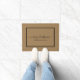 Elegant Merry Christmas Doormat with a black script on a golden background. Personalise with your family name or text.