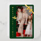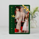 Merry Christmas - vertical golden text on a dark green background, rounded corners, gold ribbon and holly.