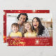Send wishes for a Merry Christmas with this red, white and gold sparkly and glowing lights card featuring one of your favourite photos. The editable suggested message reads "May the light of the season shine upon you."