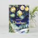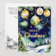 Merry Christmas holiday greeting card silver gold baubles Christmas tree starry night watercolor template invitation instant digital download, pine branches with silvergold baubles snowflakes