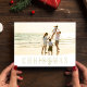 This design features a merry Christmas in two 2 photos, a modern simple elegant family, a minimalist picture photo collage, with gold calligraphy script typography, a traditional clean trendy stylish, with a minimal family photo collage, Christmas multi-photo cards, Christmas photo greeting cards, a Christmas holiday family photo, A budget-friendly holiday photo.