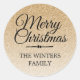A modern, faux gold glitter ombre Merry Christmas sticker or envelope seal you can personalise with your family name or names. The gold glitter ombre pattern fades onto a white background. The text "Merry Christmas" in black is set in modern script. Perfect Christmas envelope seal with modern pattern, sparkle, luxury and glam.