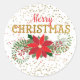 Merry Christmas Gold Glitter Poinsettia Classic Round Sticker
