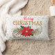 Merry Christmas Gold Glitter Poinsettia Lumbar Cushion