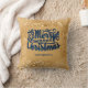 Merry Christmas Gold Navy Blue Brush Script Name Cushion