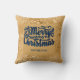 Elegant gold and navy blue "Merry Christmas" decorator pillow personalised with your family name.