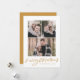 Merry Christmas Gold Script 3 Photo Collage Holiday Card