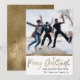 Merry Christmas Gold Script Photo Collage White Holiday Card