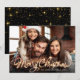 Merry Christmas Gold Sparkle Script PHOTO Greeting Holiday Card.