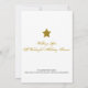 This Christmas greeting card cover features a gold artsy Christmas tree outline with stars with a vertical Merry Christmas along the right edge. Fill in the template text fields for the back message, remove the text, or click customise to select a typeface style, size, and colour you like.