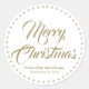 Merry Christmas gold white custom name favours Classic Round Sticker