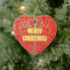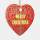 Merry Christmas Golden Red Snow Hearts Ceramic Tree Decoration