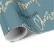 Merry Christmas Golden Script Name Black Teal Blue Wrapping Paper