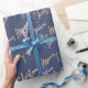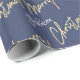 Merry Christmas Golden Script Name Blue Navy Wrapping Paper