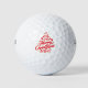 A white golf ball with a red "Merry Christmas" design on it. The golf ball is set against a plain white background. The "Merry Christmas" design is in a decorative, cursive font, with flourishes and embellishments. The design includes small images of a Christmas tree, snowflakes, and ornaments. The golf ball has a dimpled surface, which is typical of golf balls. The lighting is soft and even, highlighting the texture of the golf ball and the details of the design.