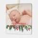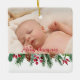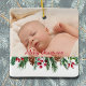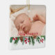 This is a lovely ornament, and great that you personalise the back with details of birthday, weight, etc.. My only tiny disappointment is the "My First" doesn't stand out very well on the background. More than happy with the printing of the photo and the writing on the back.