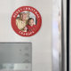 This red refrigerator magnet features a cute photo of grandpa and his grandchild with "merry christmas" and "grandpa" around the edge. To change the text and photo click on the personalise button.