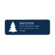 Merriest Christmas graphic typography holiday navy blue address label design. With modern hand drawn text and tree