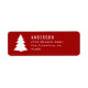 Merriest Christmas graphic typography holiday red address label design. With modern hand drawn text and tree