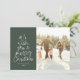 We wish you a Merry Christmas! This holiday photo card features a classic message in a fun Christmas tree shape on a green background. With a photo on the front and one on the back, it's a great way to send Christmas cheer to friends and family. The playful type treatment is shaped like a Christmas tree and is dotted with snowy speckles. The back is a matching green also dotted with speckles.