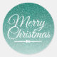 A modern, faux green glitter ombre Merry Christmas sticker or envelope seal. The green glitter ombre pattern fades onto a white background. The text "Merry Christmas" in white is set in modern script. Perfect Christmas envelope seal with modern pattern, sparkle, luxury and glam. Exclusively designed for you by Happy Dolphin Studio!