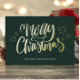 Merry Christmas Green Gold Calligraphy Non Photo Holidays Real Foil Holiday Card. Send Holiday Greetings with photos to your loved ones with this festive and Modern Foil Holiday Card. All the texts are pre-arranged for you to personalise easily and quickly with your own details. Happy Holidays!