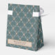 A fetching little tote bag in a blue-green for shop owners and bakers to package small bakery or food items such as candies or chocolates. Perfect for stocking-stuffers. Especially nice for gardeners with its dainty little flower and leaf lattice patterned background.