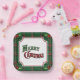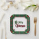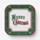 A beautiful Christmas paper plate featuring a vintage-style "Merry Christmas" and a Christmas green plaid border with holly accents. Great for restaurant holiday table settings or holiday barroom food.