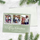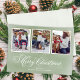 This design features a merry Christmas, with a photo collage, an elegant, green, watercolor photo card, script typography, calligraphy, simple minimalist, a minimal holiday photo cards.