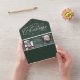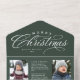 Give the annual family newsletter holiday card an elegant glow-up. This 4-photo trifold card has room for plenty of updates beneath an elegant type treatment featuring "Merry Christmas" along with your name and year. The bottom photo can be detached from the foldable and mailable card and can live in a frame or on the fridge year round. This unique hunter green holiday card is the perfect way to send cheer to friends and family.
