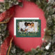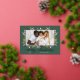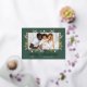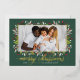 This elegant foil holiday card features a rich green background with a festive botanical frame of winter greenery and red berries. Your favorite photo is highlighted with a thin metallic foil border, and “merry christmas” shines in flowing foil script. Personalize with your family name and year for a timeless look. Backside includes a coordinating greenery sprig and custom message.