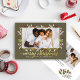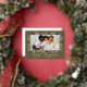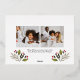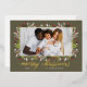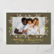 This elegant foil holiday card features a olive green background with a festive botanical frame of winter greenery and red berries. Your favorite photo is highlighted with a thin metallic foil border, and “merry christmas” shines in flowing foil script. Personalize with your family name and year for a timeless look. Backside includes a coordinating greenery sprig and custom message.