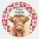 Merry Christmas Greenery Highland Miniature Cow Classic Round Sticker