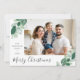 merry christmas greenery lettering photo holiday c card