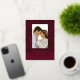 Berries, leaves and dots in gold, silver or rose gold along with the words Merry Christmas and your names on a burgundy background accent your favourite photo. Select Matte for heaviest paper and High Definition for best photo quality. Be sure to double-check your order before adding it to your cart as what you see on the screen is what will be printed. The Live Design Service can help you with your design layout if needed.