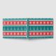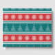 Merry Christmas illustration with Christmas tree and snowflakes decoration on red, white, blue and turquoise striped background