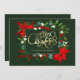 Merry Christmas. Elegant Festive Hand Drawn Holly, Mistletoe and Poinsettia frame and Gold Foil Script Greeting Christmas Holiday Flat Cards with personalised names and greeting. Matching cards, favours and gifts available in the Christmas & New Year Category of our store.