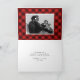 Send holiday greetings to family & friends with this cute Merry Christmas photo greeting card. The folded holiday card displays your favorite full-bleed horizontal photo with "Merry Christmas" in a faux gold foil, hand-lettered script overlay. Personalize the front of the holiday photo card by adding your name & the year. The inside of the card features space for a second photo with a red and black plaid watercolor background and your custom greeting displayed below.