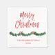 Merry Christmas custom Hand Lettered Script Napkins with watercolor garland. These Christmas napkins can be updated with design your own name and date.