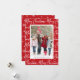 Fun and whimsical Christmas greeting card with modern hand script text overlay, personalised message, and stars and snowflakes on back.