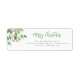 Modern minimalist calligraphy Merry Christmas return address label with holly berry greenery leaves.