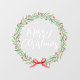 Merry Christmas handwritten text and floral wreath modern window cling displaying the text “Merry Christmas” in handwritten style.