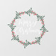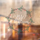 Merry Christmas handwritten text and floral wreath modern window cling displaying the text “Merry Christmas” in handwritten style.